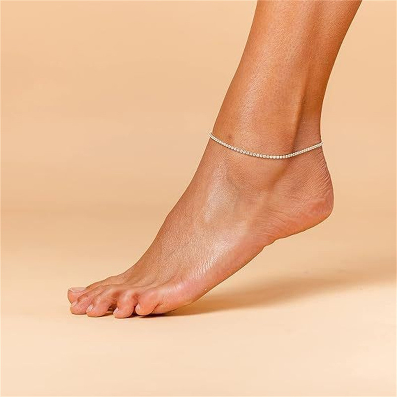Colors: 1 Round-disc anklet, 2 Gold bead chain, 3 White-K bead chain, 4 Silver three-layer set, 5 Gold rhinestone chain, 6 Twisted chain with beaded accents, 7 Bead chain, 8 Twisted chain with tiny beads, 9 Rectangular gold chain, 10 Gold snake-chain, 11 Silver twisted chain with tiny beads, 12 Gold rhinestone chain, 13 Silver rhinestone chain, 14 Silver double-layer caterpillar chain, 15 Double-layer heart, 16 Gold with pearl inlay, 17 Silver with pearl inlay, 18 Sparkling heart anklet, 19 Silver snake-chain